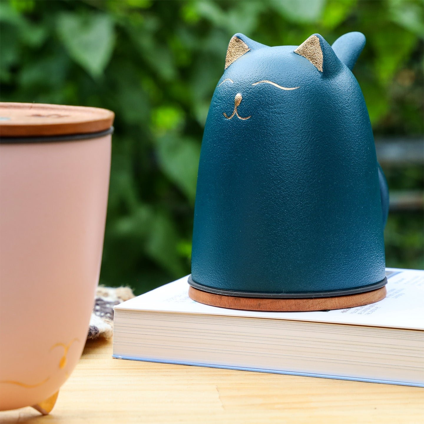 - Fusion of Wood and Ceramic, Cute Kitty Design: The rustic simplicity of wood meets the warm elegance of ceramics, adorned with gold accents for a blend of creative beauty and practicality.